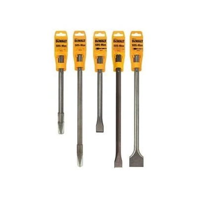 Sada sekáčů SDS MAX (DT6820, DT6821, DT6822, DT6823, DT6824) (5 ks) Vybavení SDS MAX Tvrzená, tepelně zpracovaná ocel pro vyšší odolnost a delší životnost. (1) Špičatý sekáč...